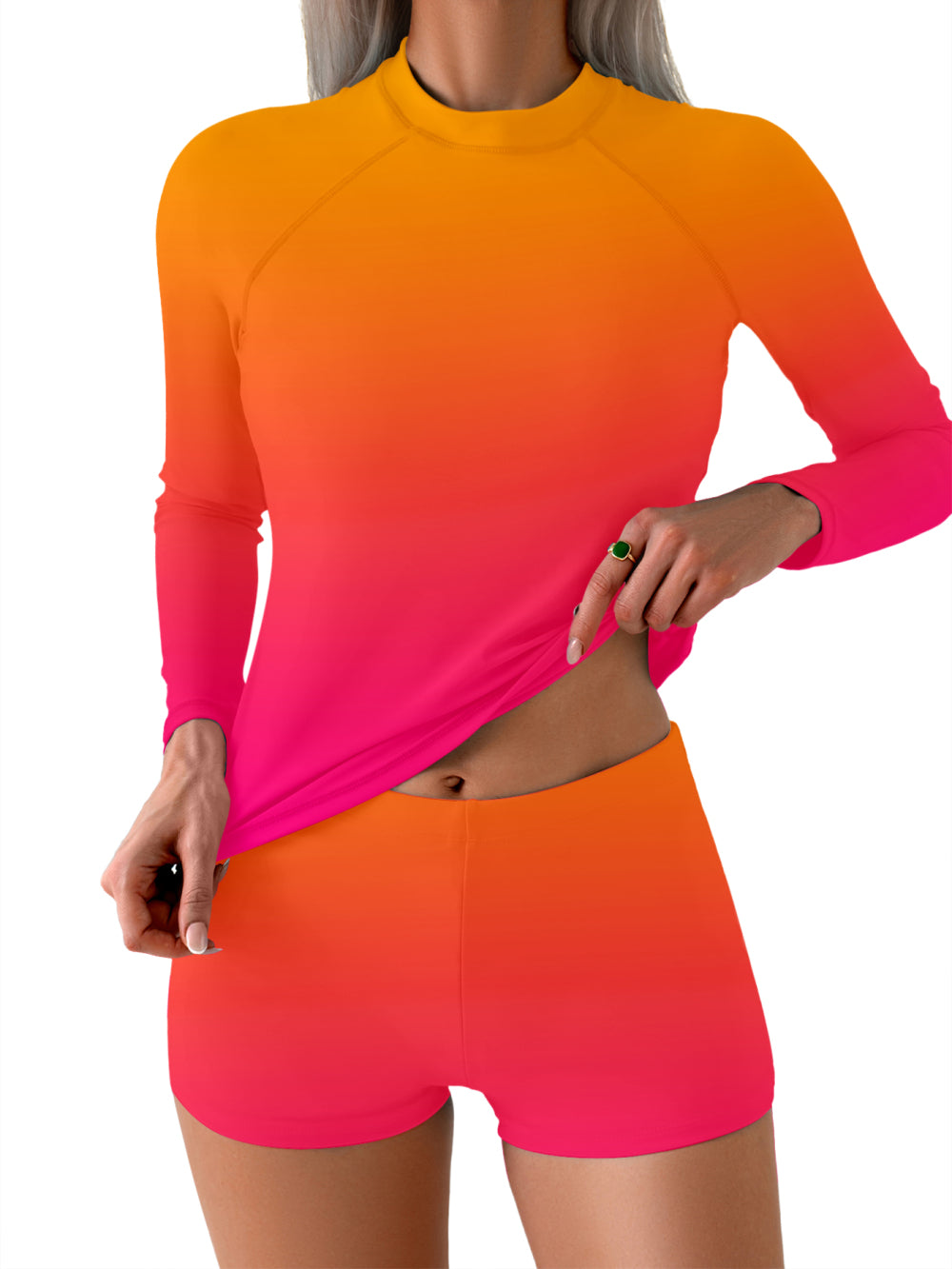 Sea Turtles Hawaiian Diving Souvenir Women'S High Elasticity Tummy Control Long Sleeve Two-Piece Swimsuit, Protection Swimwear for Beach Vacation Pool Parties